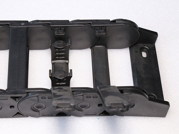 Наши облеченны е пластиковые кабельные цепи серии EN/EW изготовлены из пластика РА66, что придает им высокую прочность на разрыв. С горючестью класса UL V2, цепи тяжело поддаются деформации даже при высоких температурах, при условии, что температурный диапазон остается в пределах от -40 до 125 °С. Наши облеченные пластиковые кабельные цепи подходят для движения с высокой скоростью, они работают при очень низком уровне шума и вибрации, сохраняя постоянную скорость 8 м/с в пределах хода 80-120 м. Замкнутая конструкция кабельной цепи предотвращает попадание пыли и, таким образом, защищает кабели.